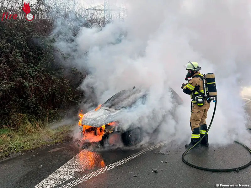 NEUSS (D): Am Dienstagmorgen, den 17. Februar 2026, wurde die Feuerwehr Neuss um 7.53 Uhr zu einem Pkw-Brand auf die A57 in Fahrtrichtung Köln alarmiert. Die Einsatzstelle befand sich im Bereich des Kreuzes Neuss-West in der Tangente zur A46 in Richtung Heinsberg.
