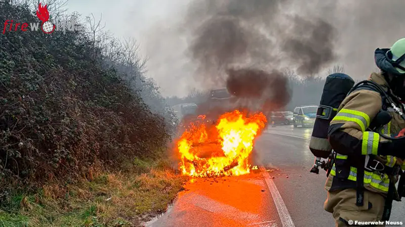NEUSS (D): Am Dienstagmorgen, den 17. Februar 2026, wurde die Feuerwehr Neuss um 7.53 Uhr zu einem Pkw-Brand auf die A57 in Fahrtrichtung Köln alarmiert. Die Einsatzstelle befand sich im Bereich des Kreuzes Neuss-West in der Tangente zur A46 in Richtung Heinsberg.