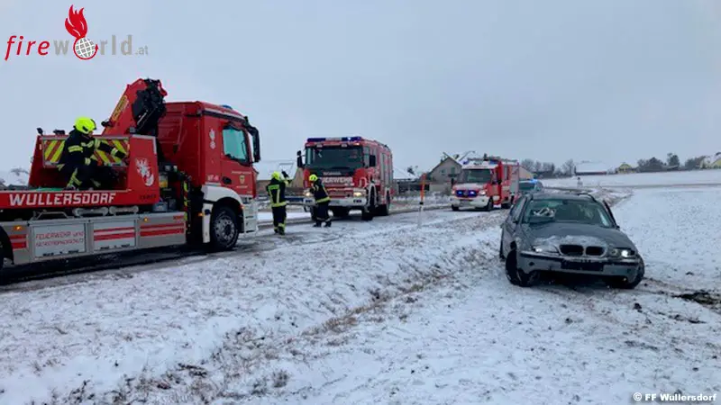 WULLERSDORF (NÖ): Am 16. Februar 2026, in den Mittagsstunden, wurden die Freiwilligen Feuerwehren Aspersdorf, Hollabrunn und Wullersdorf während des Schneetreibens zu einem Verkehrsunfall mit Menschenrettung alarmiert. Unverzüglich setzten sich drei Fahrzeuge der FF Wullersdorf in Richtung Einsatzort in Bewegung.