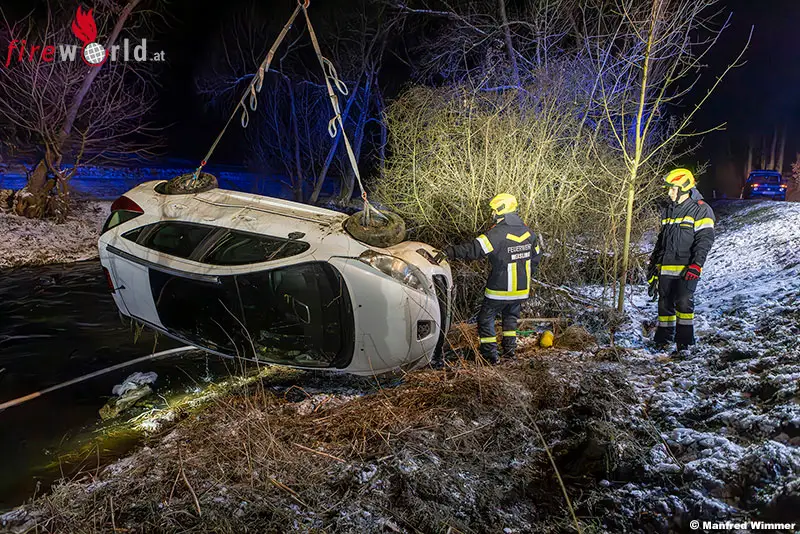 MEISLING (NÖ): Zu einem spektakulären Verkehrsunfall wurden die Einsatzkräfte am Abend des 16. Februar 2026 auf die L73 gerufen. Ein Pkw-Lenker war von Senftenberg kommend in Fahrtrichtung Meisling unterwegs, als er plötzlich die Kontrolle über sein Fahrzeug verlor. Der Wagen kam von der Fahrbahn ab, überschlug sich und blieb schließlich seitlich liegend im Bett des Kremsflusses liegen.