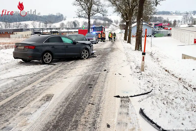 In Buchkirchen (Bezirk Wels-Land) kollidierten zwei Fahrzeuge auf der L531 Schartener Straße, Schartner Straße, frontal. Die Rettung versorgte die Insassen. Die Feuerwehr wurde zu einem Ölaustritt alarmiert, dieser stellte sich dann als Aufräumeinsatz heraus.