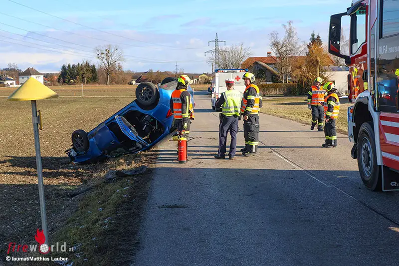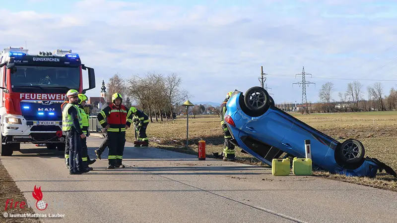 GUNSKIRCHEN (OÖ): In Gunskirchen (Bezirk Wels-Land) hat sich Mittwochvormittag, 18. Februar 2026, ein Auto überschlagen. Der Unfall endete zum Glück glimpflich.