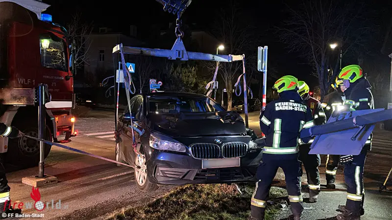 BADEN (NÖ): Gegen 04:30 Uhr des 18. Februar 2026 wurden die Mitglieder der FF Baden-Stadt zu einer Pkw – Bergung am Erzherzog Wilhelmring alarmiert.