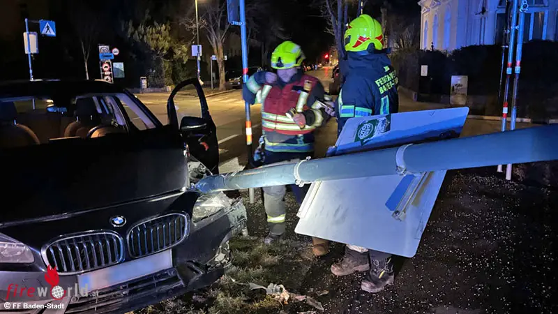 Nö: Pkw krachte in Baden gegen Straßenlaterne