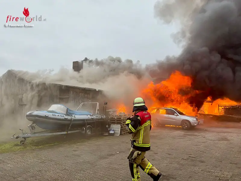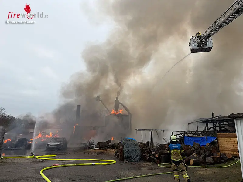 ESSEN (DEUTSCHLAND): Am Freitagnachmittag, dem 20. Februar 2026, meldeten mehrere Anrufende der Leitstelle der Essener Feuerwehr um 14:40 Uhr einen Brand in einem Gewerbegebiet an der Frillendorfer Straße im Stadtteil Essen-Frillendorf. Dort war – so berichteten es die Meldenden frühzeitig – ein großer holzverarbeitender Betrieb in Flammen aufgegangen. Aufgrund dieser Meldung alarmierte die Leitstelle sofort zwei Löschzüge der Berufsfeuerwehr sowie mehrere Sonderfahrzeuge.
