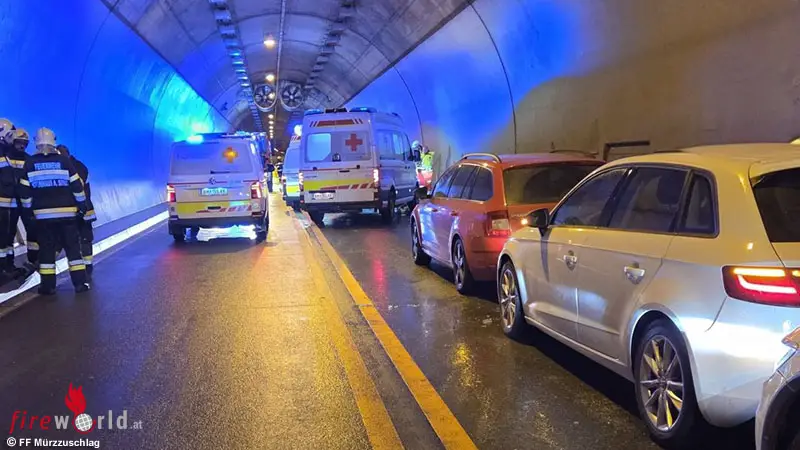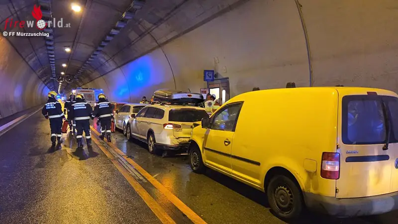Stmk: Auffahrkollision mit vier Fahrzeugen im Ganzsteintunnel in Mürzzuschlag