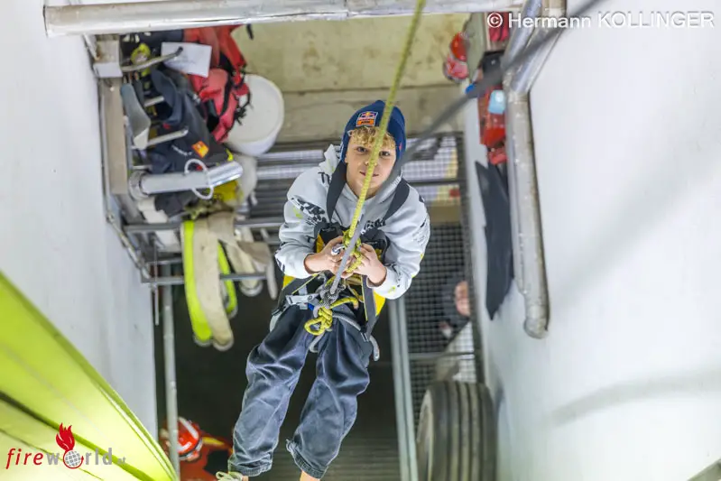 Wer es mochte – nicht jeder ist für alles zu haben, das ist bei den Erwachsenen nicht anders – durfte sich, doppelt gesichert, im Schlauchturm abseilen lassen.