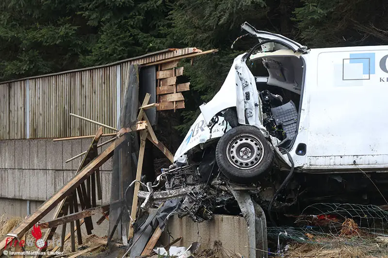 Der Unfall passierte Sonntagvormittag auf der A1 Westautobahn in Fahrtrichtung Wien im Gemeindegebiet von Laakirchen. Ein Kleintransporter ist dort aus noch unbekannten Gründen von der Autobahn abgekommen, geriet in den Böschungsbereich und prallte dann frontal gegen den Beginn einer Lärmschutzwand.