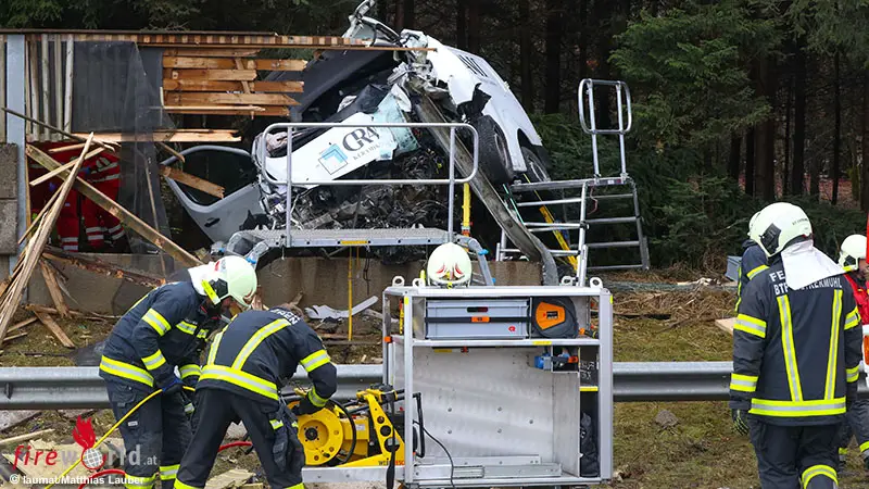 Der Unfalllenker musste dann von den Einsatzkräften mittels hydraulischem Rettungsgerät aus dem Fahrzeug befreit werden. Neben zwei Feuerwehren stand auch ein Großaufgebot an Rettungskräften, ein Notarzt und der Notarzthubschrauber Martin 3 im Einsatz. Trotz aller Bemühungen der Notärzte erlag der Lenker des Kleintransporters noch am Unfallort seinen schweren Verletzungen.