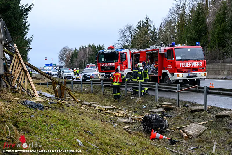 Oö: Kleintransporter prallt mit hoher Wucht auf A 1 bei Laakirchen gegen Lärmschutzwand → ein Toter (38)