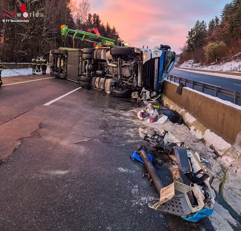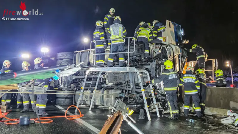 MOOSKIRCHEN (STMK): In der Nacht auf den Sonntag, 22. Februar 2026, kam es um 02.50 Uhr auf der A2 Südautobahn in Fahrtrichtung Wien kurz nach dem Assingbergtunnel zu einem schweren Verkehrsunfall mit einem Sattelschlepper.