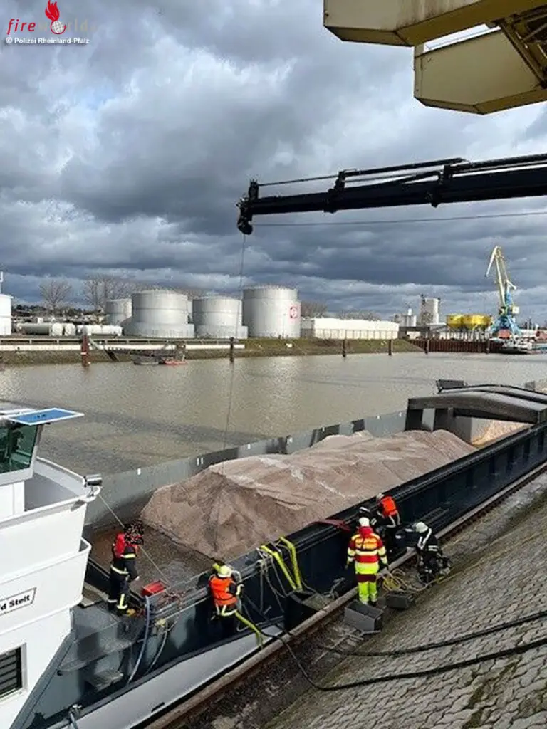 ANDERNACH (DEUTSCHLAND): Am Montag, 23. Februar 2026, wurde die Wasserschutzpolizeistation Andernach gegen 11:50 Uhr durch die Integrierte Leitstelle Koblenz darüber informiert, dass im Hafenbecken Andernach ein mit Streusalz beladenes Gütermotorschiff leckgeschlagen sei
