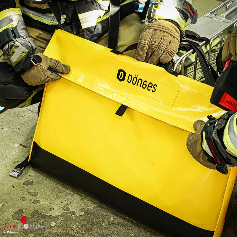 Der „Smoke Defender“ ist den Angaben von Dönges zufolge optimal auf die Anforderungen der Feuerwehr abgestimmt. Er lässt sich auch unter Stressbedingungen schnell und einfach mit Einsatzhandschuhen und ohne Werkzeug montieren. Dabei kann er problemlos an verschiedene Türbreiten angepasst werden. Das robuste und langlebige Material ist für härteste Einsätze geeignet; der Rauchschutzvorhang kann nach einem Einsatz mit Wasser und nicht ätzenden Reinigern gesäubert und wiederverwendet werden. Für den Transport wird der „Smoke Defender“ mit einer wasserabweisenden Tasche geliefert, die für eine schnelle Verfügbarkeit am Schlauchtragekorb befestigt werden kann.