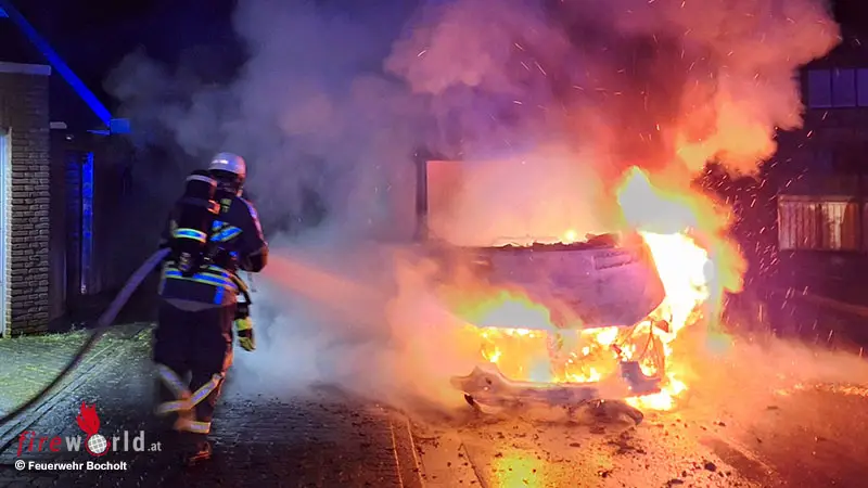 BOCHOLT (DEUTSCHLAND): Um ca. 01:25 Uhr wurden die Feuerwehr und der Rettungsdienst der Stadt Bocholt am 24. Februar 2026 zu einem Fahrzeugbrand auf die Hohenhorster Straße alarmiert.