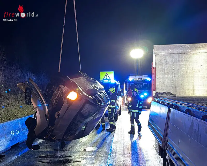 PÖCHLARN (NÖ): Am Dienstagfrüh, dem 24. Februar 2026, kam ein Pkw-Lenker auf der Autobahn A1 zwischen den Anschlussstellen Ybbs und Pöchlarn in Fahrtrichtung Wien aus bislang ungeklärter Ursache von der Fahrbahn ab.