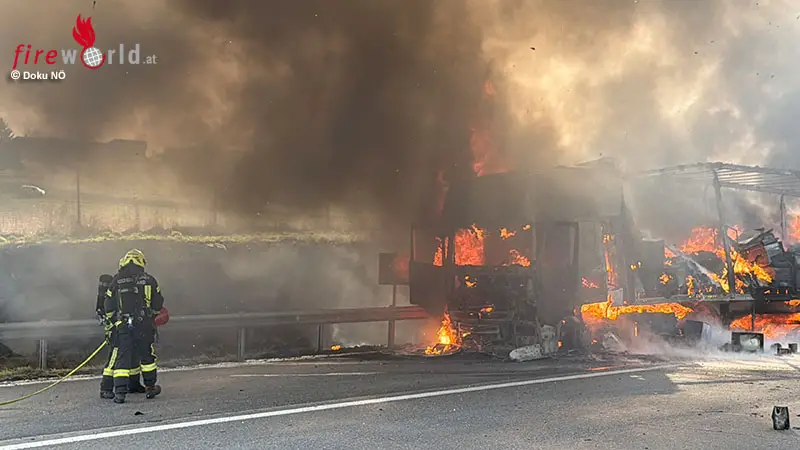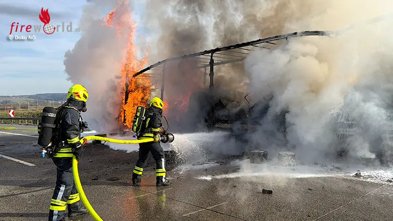 Zeitgleich wurde unter schwerem Atemschutz mit den Löscharbeiten begonnen. Die Autobahn A1 musste für die Dauer des Löscheinsatzes in Fahrtrichtung Wien vollständig gesperrt werden.