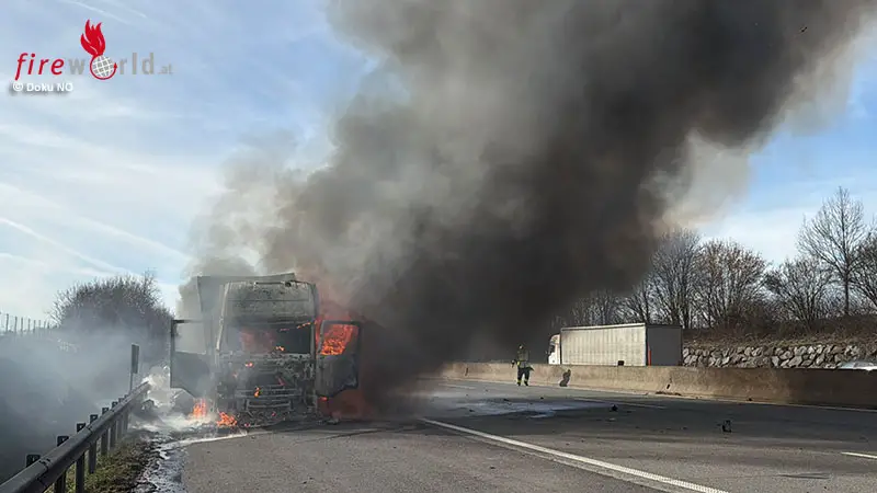 YBBS AN DER DONAU (NÖ): Am Donnerstagnachmittag, dem 26. Februar 2026, wurden die Feuerwehren durch die Bereichsalarmzentrale zu einem Lkw-Brand auf die Autobahn A1 in Fahrtrichtung Wien alarmiert. Der Einsatzort befand sich zwischen den Anschlussstellen Ybbs und Pöchlarn.