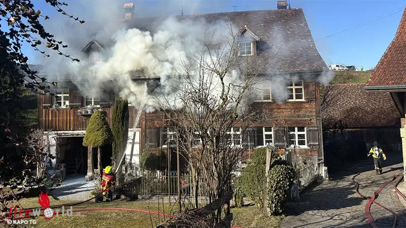 NEUKIRCHEN AN DER THUR (SCHWEIZ): Am Mittwochnachmittag, dem 25. Februar 2026, brach ein Brand in einem Einfamilienhaus in Neukirch an der Thur (Gemeinde Kradolf-Schönenberg) aus. Zwei Personen retteten sich, Sachschaden entstand.