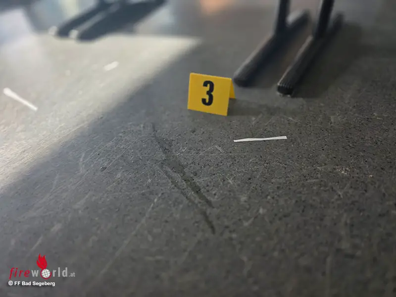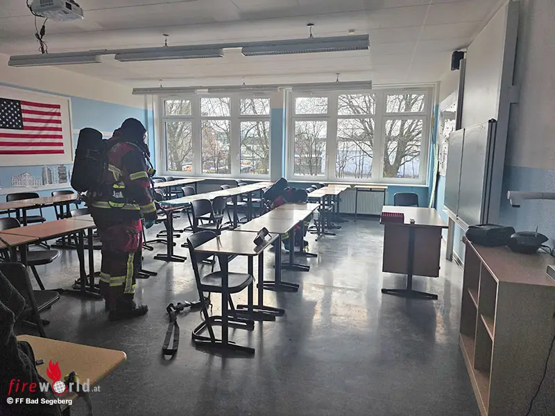 Ein Angriffstrupp unter umluftunabhängigem Atemschutz führte daraufhin eine erste Kontrolle sowie Messungen im betroffenen Bereich durch. Parallel wurde das Schulgebäude vorsorglich vollständig geräumt. Zur weiteren Unterstützung wurde der ABC-Zug des Kreises Segeberg hinzugezogen, der mit umfangreicher moderner Messtechnik zahlreiche Bereiche sowie Gegenstände aus dem Klassenraum beprobte und anschließend analysierte.