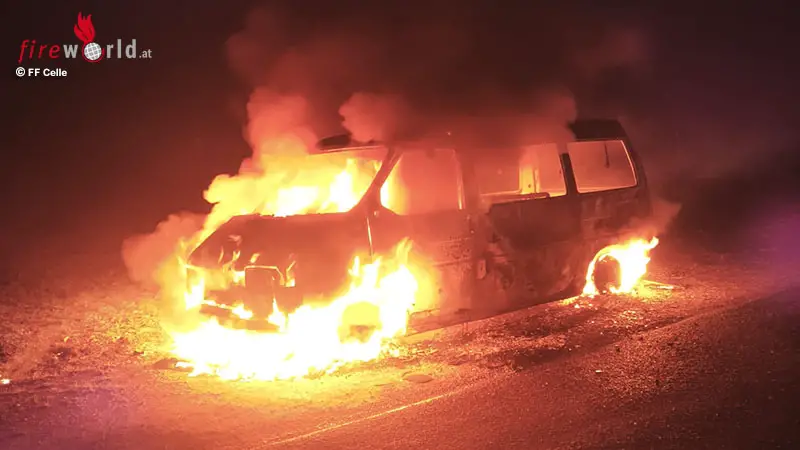D: Transporter in Celle in Vollbrand