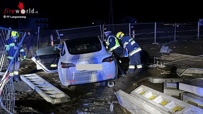 LANGENWANG (STMK): Am Mittwoch, 25. Februar 2026, wurde die Feuerwehr Langenwang um 19:33 Uhr zu einem Verkehrsunfall auf die L118 zwischen Langenwang und Krieglach alarmiert. Ein Elektrofahrzeug fuhr in den Baustellenbereich und blieb beschädigt stehen.