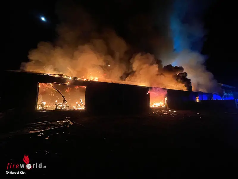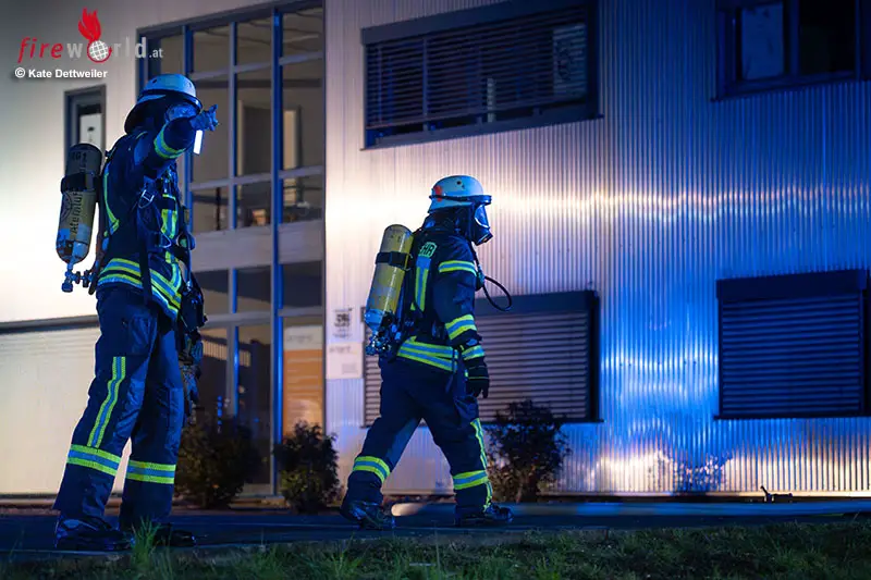 Schon bei ihrer ersten Lageerkundung stellten die Feuerwehrleute eine starke Verrauchung im gesamten eingeschossigen Gebäude fest. Noch während sie einen Löschangriff aufbauten kam es zu einer Rauchgasdurchzündung. Dabei entzündeten sich schlagartig die im Gebäude aufgestauten brennbaren und extrem heißen Brandgase und setzten dieses komplett in Brand.
