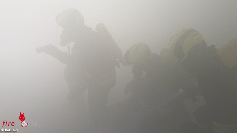 Zur Menschenrettung wurden von beiden Feuerwehren jeweils ein Atemschutztrupp in den stark verrauchten Hangar entsandt. Die beiden vermissten Personen konnten rasch lokalisiert und mithilfe eines Rettungstuchs aus dem Hangar gerettet werden.