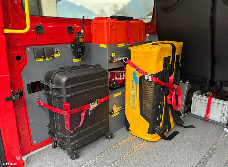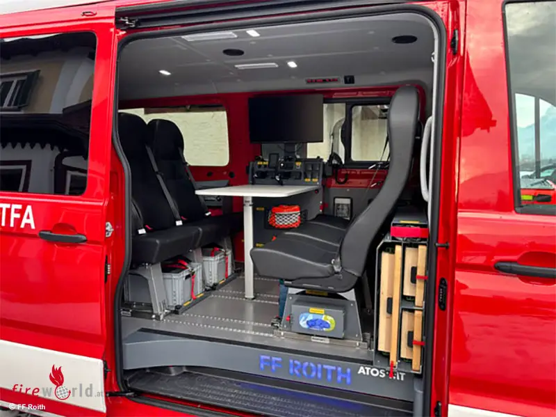 Alle Beleuchtungsmittel sind in zeitgemäßer und leistungsfähiger LED-Technologie ausgeführt. Die Anhängerkupplung ermöglicht einen etwaigen Einsatz im Anhängerbetrieb. Den feuerwehrtechnischen Ausbau übernahm in perfekter Zusammenarbeit ein Fahrzeugumbauer aus der Region: ATOS MT GmbH aus Regau.