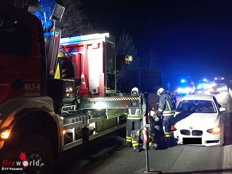 PINKAFELD (BGLD): In den Abendstunden des 2. März 2026 wurde die FF Pinkafeld mittels Rufempfänger zu einem T1- Fahrzeugbergung auf die A2 (Südautobahn) im Baustellenbereich Richtung Graz mit dem Zusatz „Drohne wird benötigt“ alarmiert.