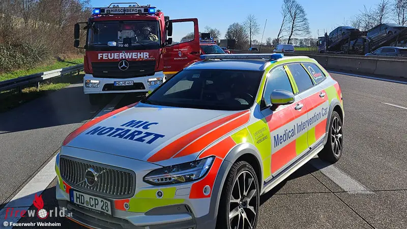WEINHEIM (DEUTSCHLAND): Am Montagnachmittag, 2. März 2026, ist es auf der Bundesautobahn 5 in Fahrtrichtung Frankfurt, kurz vor der Anschlussstelle Hemsbach, zu einem schweren Verkehrsunfall gekommen. In den Unfall waren vier Autos verwickelt. Mehrere Menschen wurden leicht verletzt. Für einen Patienten kam jede Hilfe zu spät.