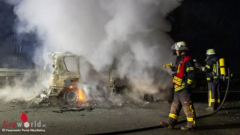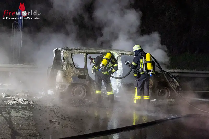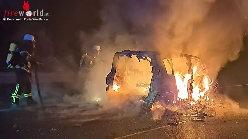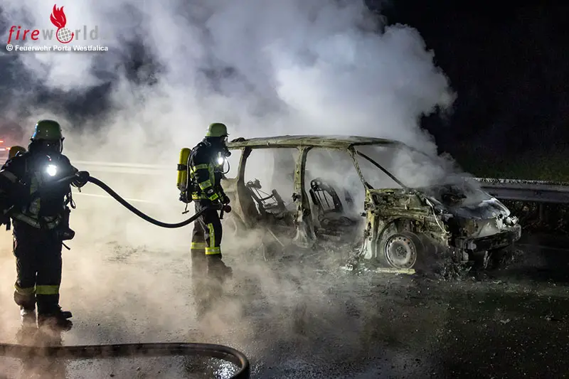 PORTA WESTFALICA (DEUTSCHLAND): Die Freiwillige Feuerwehr Porta Westfalica wurde am Dienstag, dem 3. März 2026, gegen 22:55 Uhr zu einem Pkw-Brand auf der A2 in Fahrtrichtung Hannover alarmiert. Zwischen den Anschlussstellen Vennebeck und Veltheim stand ein Renault in Vollbrand. Verletzt wurde niemand.