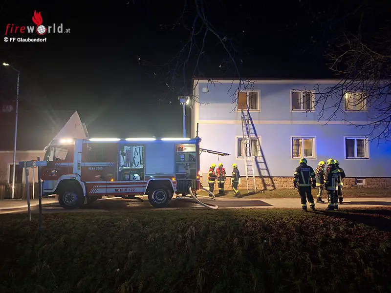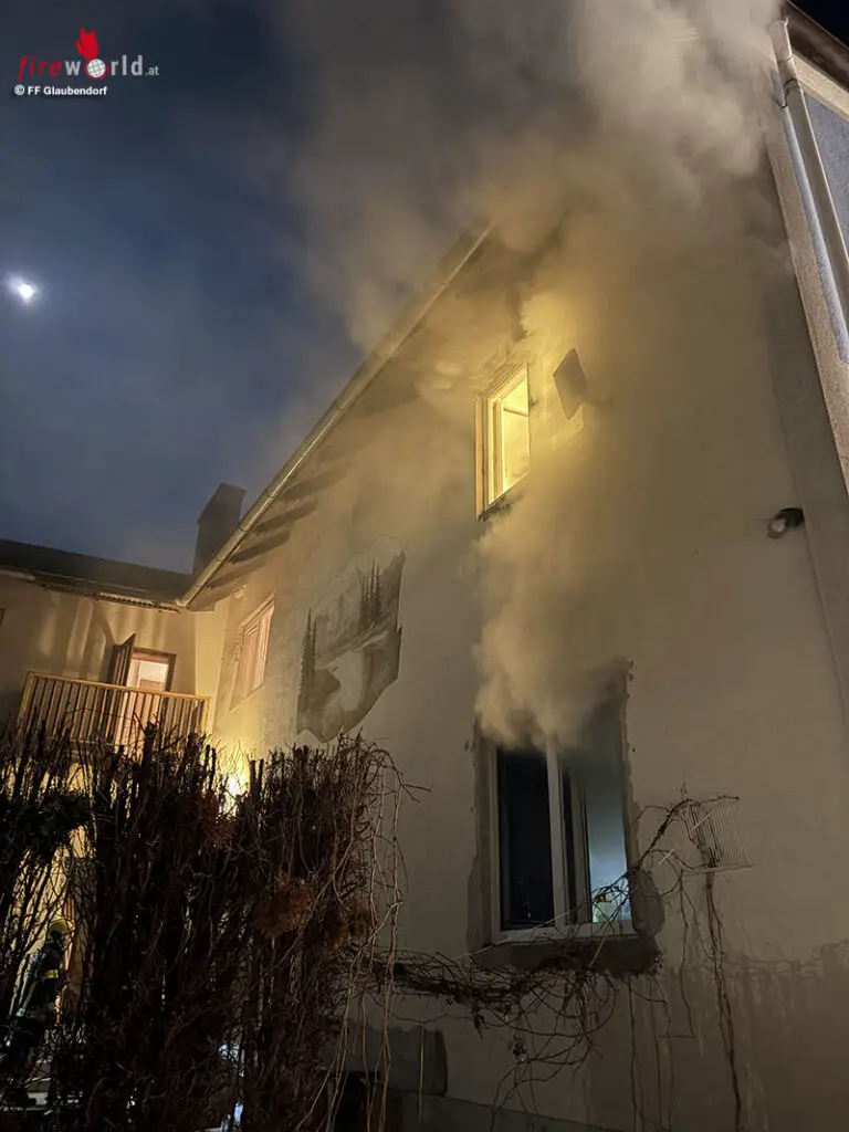 GLAUBENDORF (NÖ): Die Feuerwehren Glaubendorf, Ziersdorf, Großwetzdorf, Rohrbach und Thern wurden am 4. März 2026 kurz nach 01:30 Uhr zu einem Zimmerbrand mit eingeschlossenen Personen nach Glaubendorf (Bezirk Hollabrunn) alarmiert.