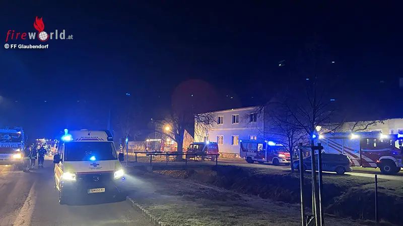 GLAUBENDORF (NÖ): Die Feuerwehren Glaubendorf, Ziersdorf, Großwetzdorf, Rohrbach und Thern wurden am 4. März 2026 kurz nach 01:30 Uhr zu einem Zimmerbrand mit eingeschlossenen Personen nach Glaubendorf (Bezirk Hollabrunn) alarmiert.