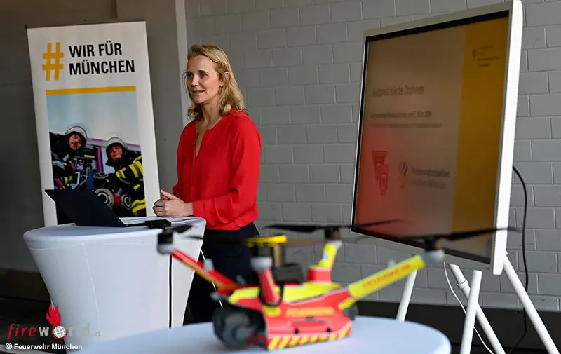 Christian Schnepf, Leiter der Abteilung „Einsatz-Informations- und Kommunikationstechnik“ bei der Feuerwehr München ging bei der Pressekonferenz auf die Vorteile der automatisierten Drohnen für die Einsatzkräfte ein: „Durch die Übertragung von Bildern der Einsatzstelle in die Führungsfahrzeuge kann die Einsatzleitung Entscheidungen deutlich früher treffen und damit die Einsatzmaßnahmen schon vor dem Eintreffen strukturieren. Das kann ein entscheidender Zeitgewinn für Einsatzkräfte und Betroffene sein.“