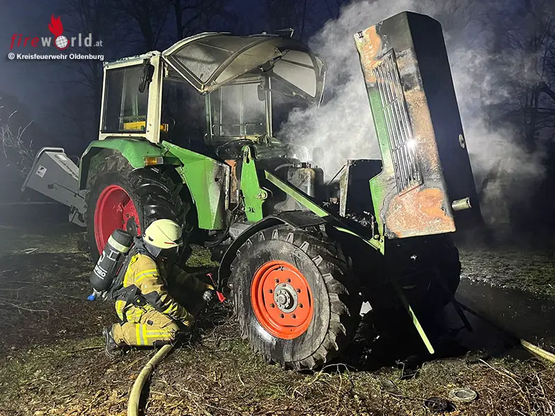 WARDENBURG (DEUTSCHLAND): Gegen 18:24 Uhr des 4. März 2026 wurde die Freiwillige Feuerwehr Achternmeer, Gemeinde Wardenburg, zu einem Treckerbrand in die Straße „Am Kanal“ alarmiert.