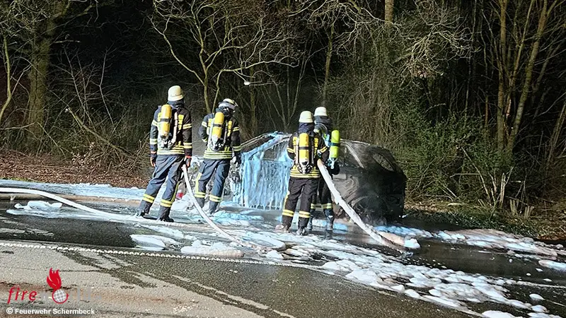 SCHERMBECK (DEUTSCHLAND): In der Nacht zum Samstag, 7. März 2026, wurde der Löschzug Gahlen um 1:30 Uhr mit dem Einsatzstichwort „Pkw-Brand“ zur Östricher Straße alarmiert.