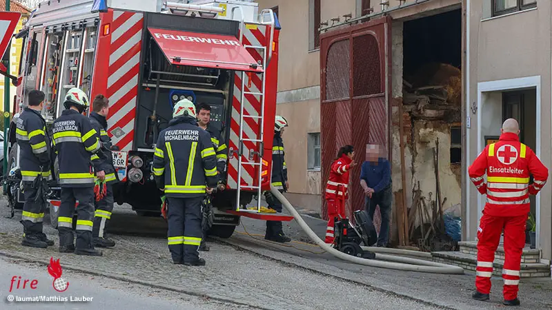 MICHAELNBACH (OÖ): In Michaelnbach (Bezirk Grieskirchen) ist es Sonntagnachmittag, 8. März 2026, in einem landwirtschaftlichen Gebäude im Ortszentrum zu einem Brand gekommen. Zwei Personen mussten ins Krankenhaus gebracht werden.