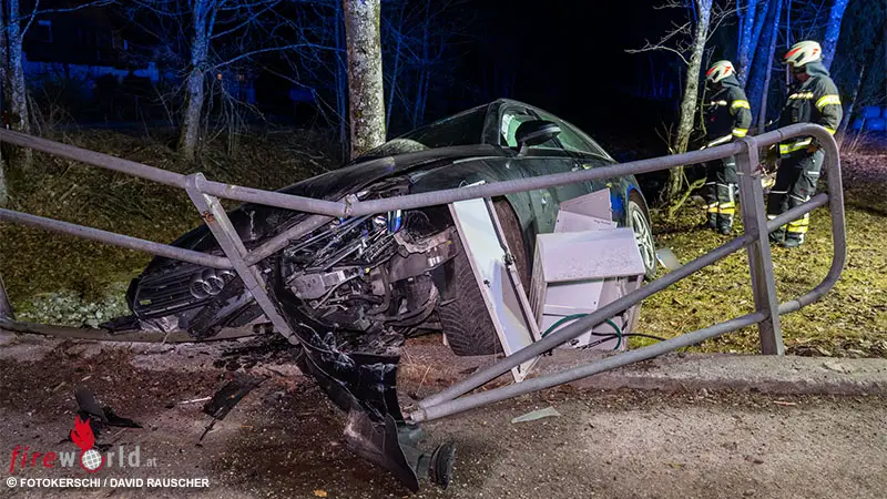 GRÜNAU IN ALMTAL (OÖ); Ein schwerer Verkehrsunfall hat sich am Abend des 7. März 2026 im Gemeindegebiet von Grünau im Almtal im Bezirk Gmunden ereignet. Gegen 21:51 Uhr wurde die Feuerwehr Grünau im Almtal in den Bereich „In der Lahn“ alarmiert, nachdem ein Pkw nach mehreren Kollisionen schwer beschädigt an einer Brücke zum Stillstand gekommen war.