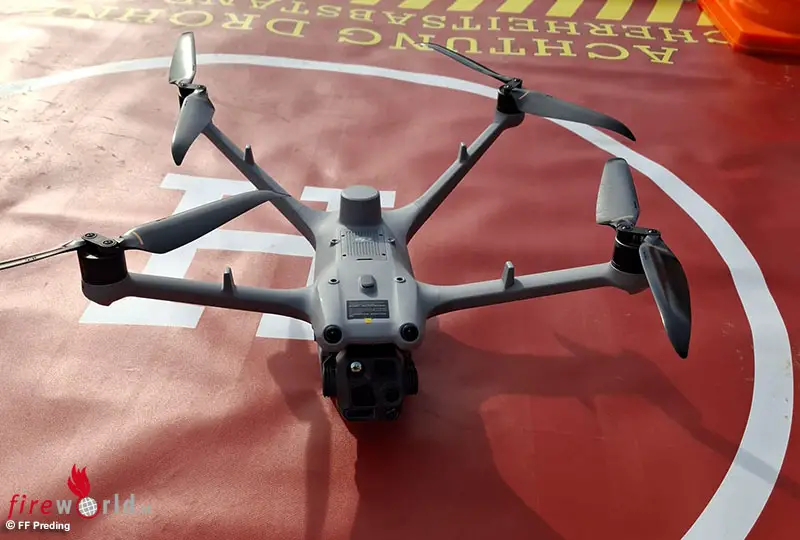 Mit der neuen Drohne vom Typ DJI Matrice 4TD steht den Einsatzkräften ein hochmodernes System zur Verfügung, das speziell für anspruchsvolle Einsätze entwickelt wurde. Die wasser- und staubgeschützte Drohne kann sowohl mit dem automatisierten System „DJI Dock 3“ betrieben werden als auch eigenständig eingesetzt werden. Dank ihrer C2-Klassifizierung ist sie auch bei widrigen Wetterbedingungen flugtauglich.