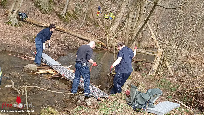 D: Feuerwehr errichtet improvisierte Brücke für verletzte Spaziergängerin