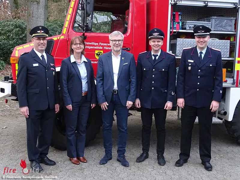 WESEL (DEUTSCHLAND): Am Samstag, 7. März 2026, erfolgte die offizielle Übergabe eines generalüberholten Tanklöschfahrzeuges durch die Kreisrätin Annerose Tiedt und den Samtgemeindebürgermeister Olaf Muus an die Freiwillige Feuerwehr Wesel.