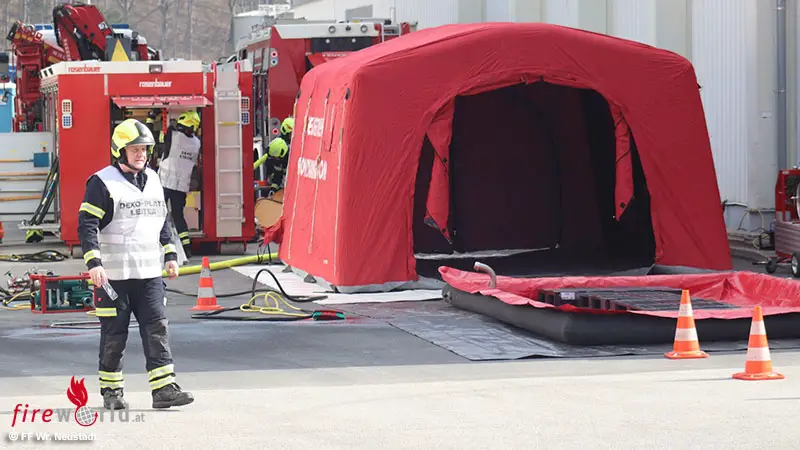 Die sofort alarmierte Betriebsfeuerwehr des Unternehmens führte erste Maßnahmen durch und konnte die Gefahr einer unkontrollierten Ausbreitung innerhalb kürzester Zeit bannen. Gleichzeitig wurde im Feuerwehrabschnitt Gutenstein Abschnittsalarm ausgelöst und die Schadstoffzüge Wiener Neustadt und Aspang inklusive Dekontaminationseinheit alarmiert.