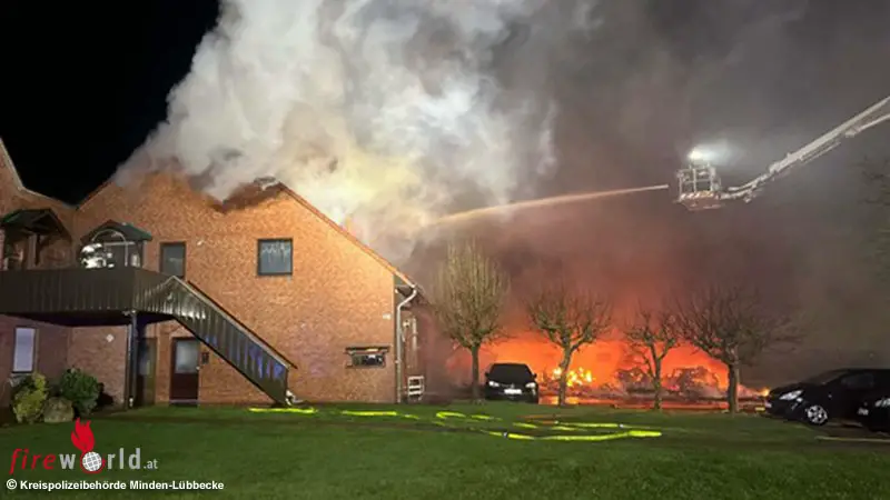 HILLE (DEUTSCHLAND): Ein Carport-Brand hat in der Nacht zu Freitag, 13. März 2026, an der Mindener Straße in Hille einen größeren Einsatz von Polizei und Feuerwehr ausgelöst.