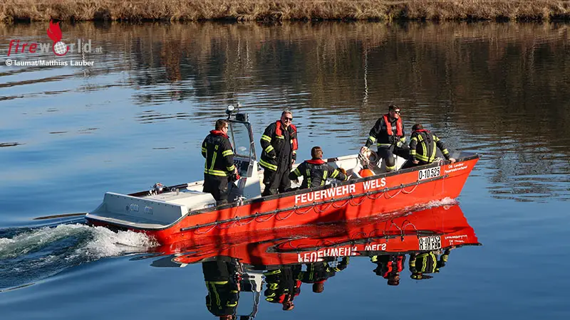 SCHLEISSHEIM | WELS (OÖ): Eine leblose Person wurde Freitagnachmittag, dem 13. März 2026, in der Traun treibend zwischen Schleißheim und Wels-Schafwiesen entdeckt. Die Person wurde dann mittels Boot aus der Traun geborgen.