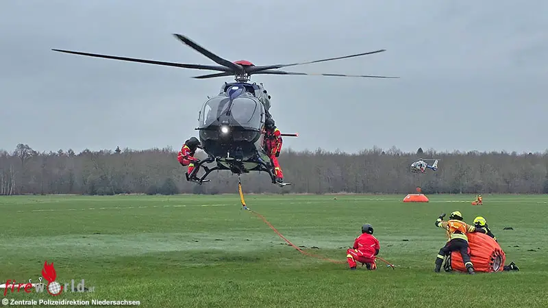 Neben der Zentralen Polizeidirektion waren auch die Feuerwehr Westerloy und Westerstede sowie das Niedersächsische Landesamt für Brand- und Katastrophenschutz (NLBK) und Kollegen der Hubschrauberstaffel Sachsen an der Übung beteiligt. Gemeinsam trainierten sie das Zusammenspiel zwischen Luft- und Bodenkräften, um im Ernstfall schnell und koordiniert reagieren zu können.