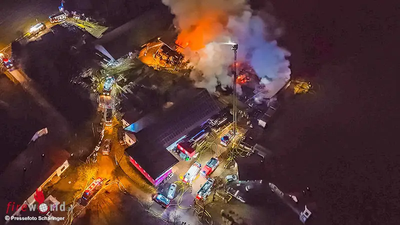 GURTEN (OÖ): Am späten Montagabend, 16. März 2026, kam es im Ortsteil Freiling in Gurten, Bezirk Ried im Innkreis, zu einem massiven Brand einer Lagerhalle.