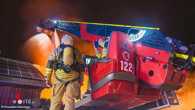 Oö: Hohe Brandlast bei Großfeuer einer Lagerhalle in Gurten