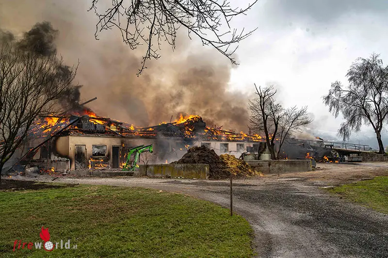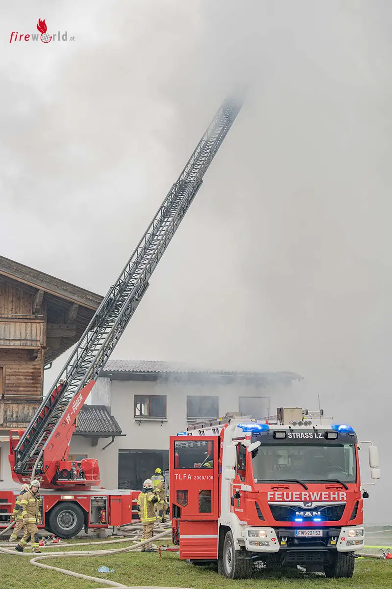 STRASS IM ZILLERTAL (TIROL): Am 17. März 2026 um 10:29 Uhr wurde die Freiwillige Feuerwehr Strass im Zillertal zu einem Brand eines landwirtschaftlichen Wirtschaftsgebäudes alarmiert. Aufgrund der Lage sowie der raschen Brandausbreitung veranlasste der Einsatzleiter der Feuerwehr Strass, Kommandant-Stellvertreter Benjamin Korin, eine umfangreiche Nachalarmierung von acht weiteren Feuerwehren aus dem Bezirk Schwaz sowie einer Feuerwehr aus dem Nachbarbezirk Kufstein.