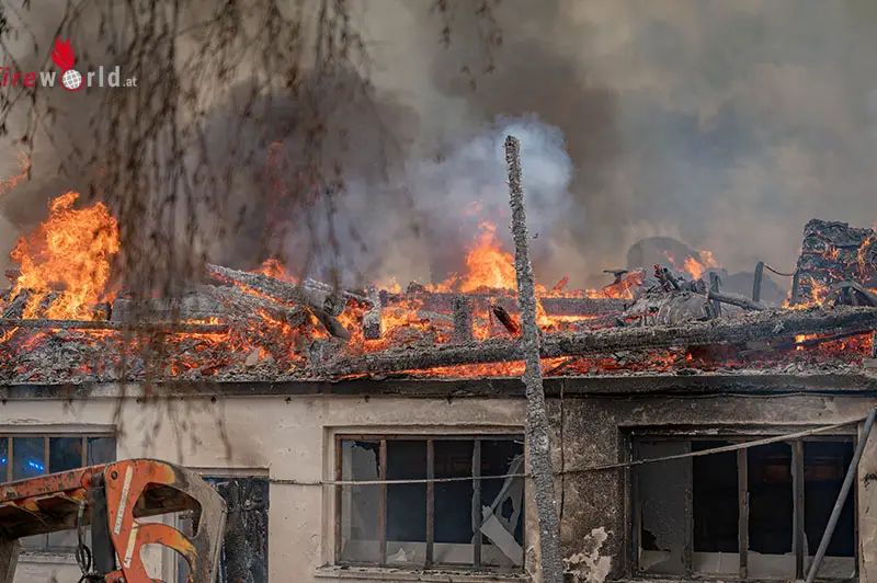 Beim Eintreffen der ersten Kräfte stand das Wirtschaftsgebäude bereits in Vollbrand. Durch das rasche Eingreifen der erst eintreffenden Feuerwehr Strass konnte ein Übergreifen der Flammen auf das angrenzende Wohnhaus verhindert werden.