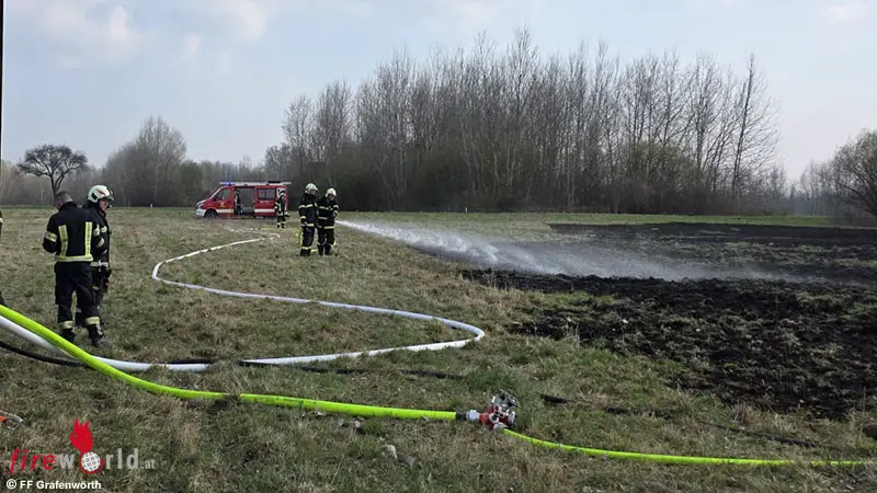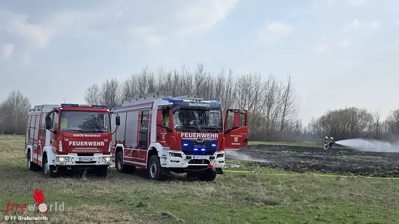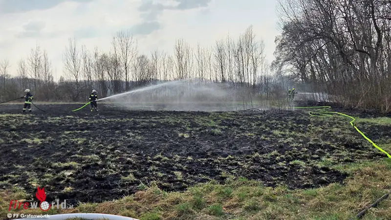 GRAFENWÖRTH (NÖ): Gerade noch rechtzeitig kamen die Feuerwehren am 18. März 2026 zu einem ausgedehnten Flurbrand in Grafenwörth. Die Feuerfront, die bereits auf den nahen Wald übergriff, konnte unter dem Einsatz mehrerer Strahlrohre noch gestoppt werden.